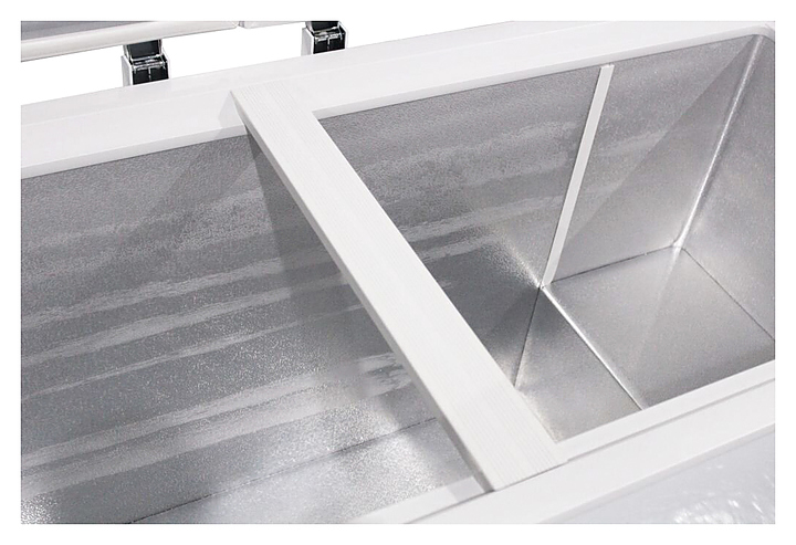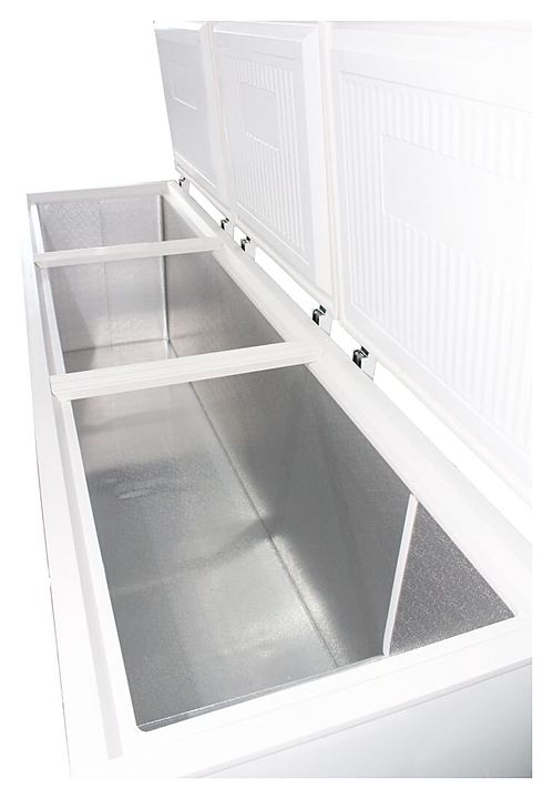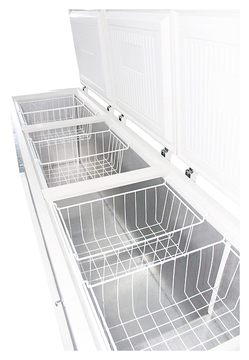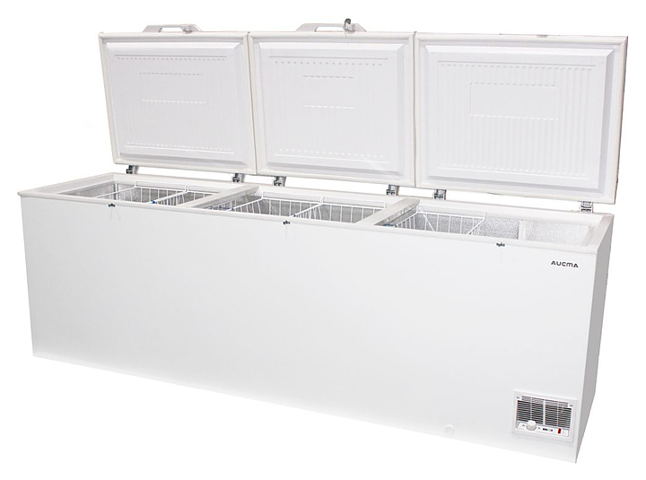Морозильный ларь Aucma BD-818 используется на предприятиях общественного питания и торговли для заморозки и длительного хранения продуктов и полуфабрикатов. Модель оснащена корзиной из стальной проволоки с порошковым покрытием и 3 откидными литыми крышками с нескользящими ручками и замками. Корпус выполнен из рельефного алюминия, внутренний короб - из алюминия, крышка - из пластмассы, покрытой порошковой краской CRS (холоднокатаная сталь), шарниры - из металла с пластиковым покрытием, теплоизоляция - из полиуретана толщиной 70 мм. В комплект поставки входит пластиковый скребок. Особенности: