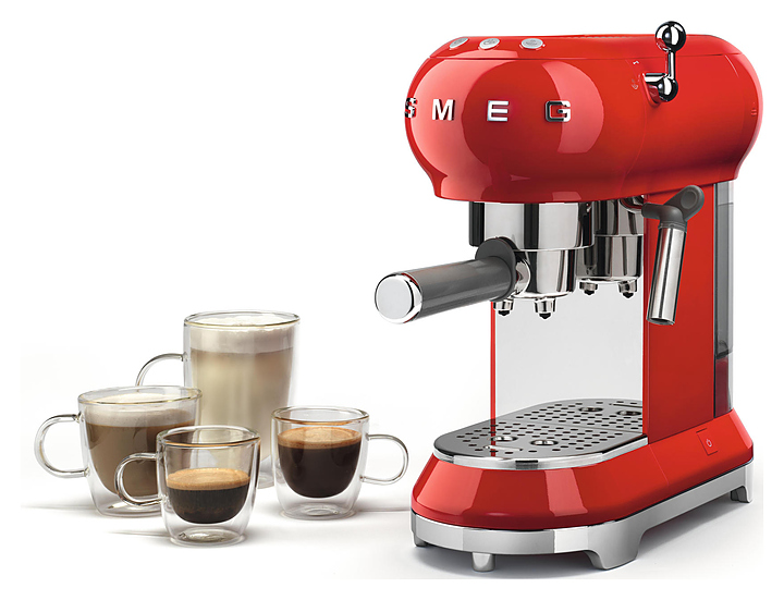 Кофемашина Smeg ECF01RDEU предназначена для приготовления эспрессо и кофейных напитков на его основе в частных домах и квартирах. Модель выполнена в стиле 50-х годов. Корпус изготовлен из окрашенного металла и цветного пластика, основание - из хромированного пластика, держатель фильтра, рамка, капучинатор и поддон для чашек - из нержавеющей стали. Комплектация: