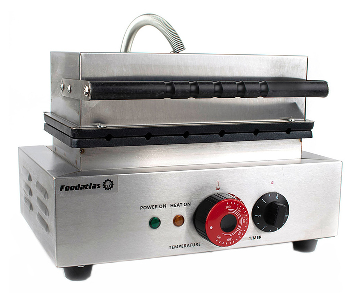 Аппарат для корн-догов Foodatlas EB-Q1 Eco используется на предприятиях общественного питания и торговли для приготовления хрустящих сосисок в тесте. Модель оснащена терморегулятором. Рабочая поверхность быстро разогревается, подпекая тесто. Характеристики: