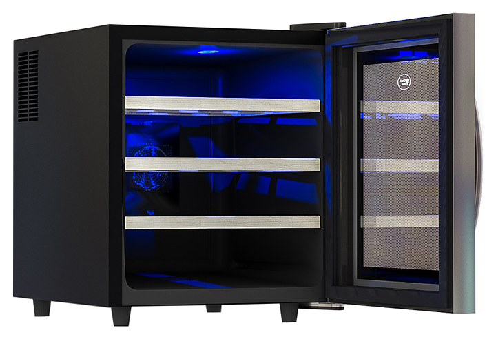 Винный шкаф Cold Vine C16-TBF1 создает оптимальные условия для сохранения всех вкусовых свойств разливного вина. Модель оснащена встроенным вентилятором, 3 деревянными полками, голубой светодиодной подсветкой и регулируемыми ножками. Корпус выполнен из окрашенной в черный цвет стали, дверь в черной раме и тонкой стальной окантовке - из прозрачного двойного стекла. Особенности: