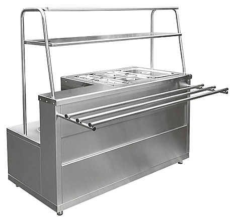 Мармит Пищевые Технологии Лира-Профи МЭП-1-2Б/ЛП предназначен для кратковременного сохранения в горячем состоянии первых, вторых блюд, соусов и гарниров в составе линий раздач или самостоятельно на предприятиях общественного питания и торговли. Модель оснащена встроенной прямоугольной ванной с электронагревательными элементами и гнездами для установки гастроемкостей, 1 конфоркой, 2 полками для тарелок, направляющими для подносов и регулируемыми по высоте ножками. Корпус выполнен из нержавеющей стали. В комплект поставки входят 5 гастроемкостей глубиной 150 мм с крышками (1х GN 1/1, 2х GN 1/2, 2х GN 1/4). Особенности: