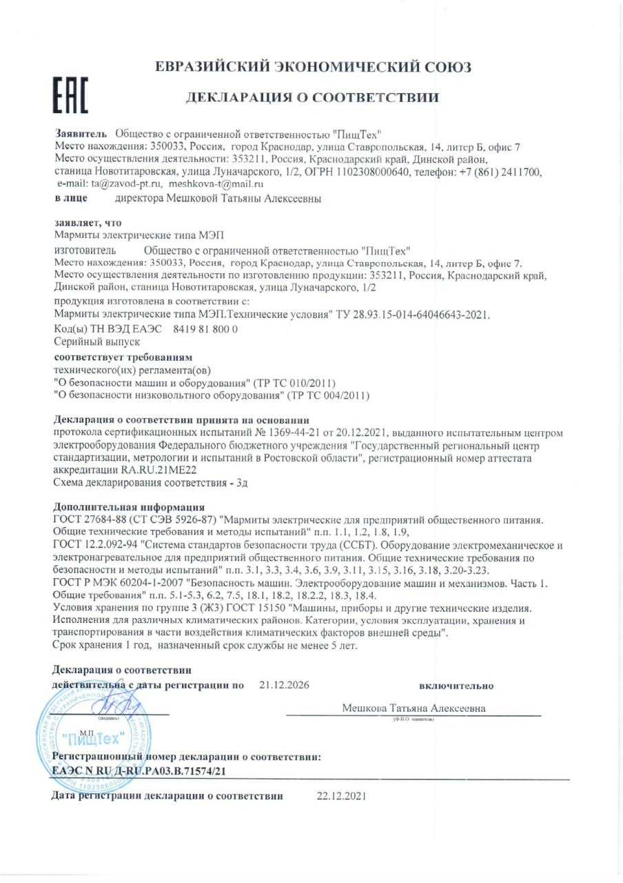 Мармит ПищТех Лира-Профи МЭП-2Б/ЛП-1500