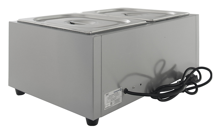 Мармит Foodatlas EH-2V предназначен для подогрева и поддержания в теплом состоянии первых и вторых блюд, различных соусов и гарниров на предприятиях общественного питания и торговли. Модель оснащена терморегулятором. Корпус выполнен из нержавеющей стали 460, гастроемкость - из нержавеющей стали 201. В комплект поставки входят 2 съемных гастроемкости GN 1/2 глубиной 100 мм с крышками. Особенности: