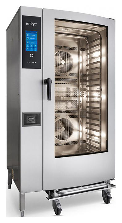 Пароконвектомат Retigo B2011B VISION II серии Blue Vision II предназначен для обжаривания, приготовления на пару, бланширования, запекания и других видов тепловой обработки продуктов на фабриках-кухнях, предприятиях общественного питания и торговли. Оборудование заменяет сразу несколько видов приборов: плиту, конвекционную печь, жарочный шкаф, духовку, опрокидывающуюся сковороду, пищеварочный котел и фритюрницу. Приготовленные в пароконвектомате блюда сохраняют все полезные вещества. Модель оснащена сенсорной панелью управления и цифровым дисплеем. Комплектация: