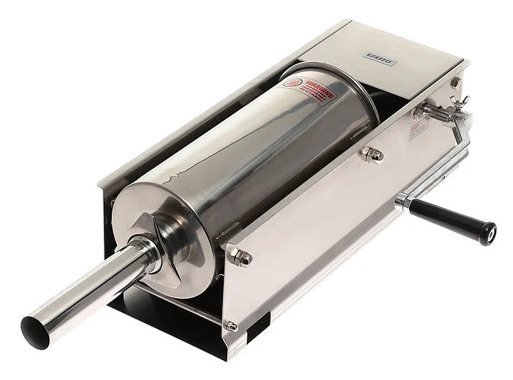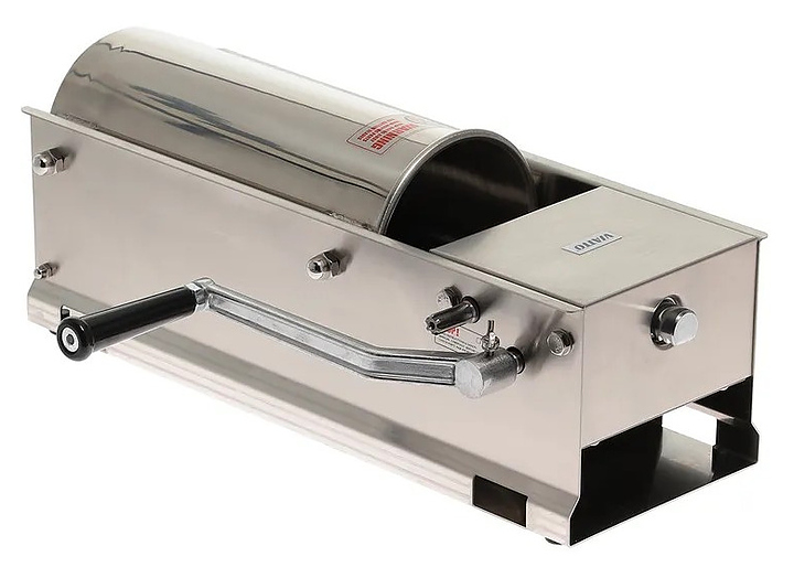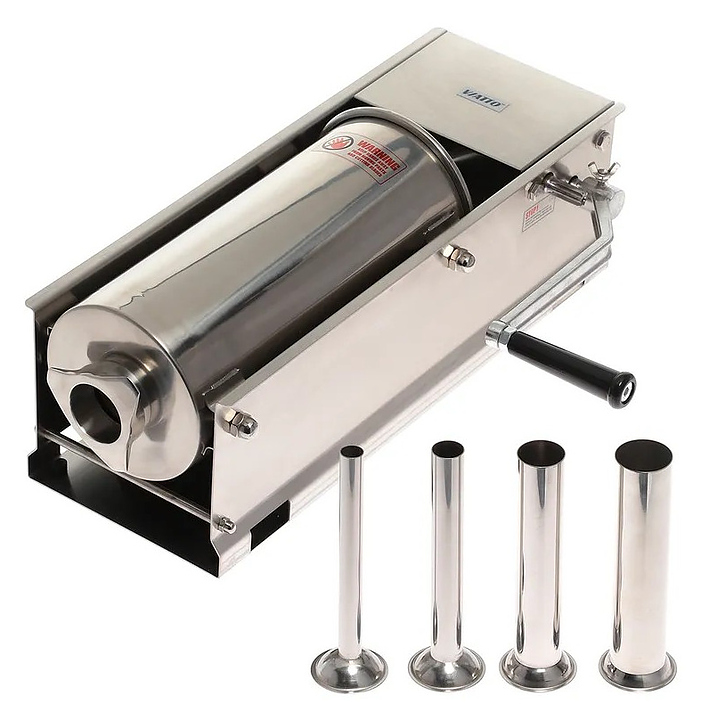Колбасный шприц VIATTO SH-5 используется на предприятиях общественного питания и торговли для изготовления колбас, сосисок, сарделек и шпикачек. Корпус выполнен из нержавеющей стали. В комплект поставки входят 4 насадки диаметром 16, 22, 32 и 38 мм. Характеристики: