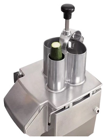 Овощерезка Robot Coupe CL50 Ultra Pizza используется на предприятиях общественного питания и торговли для нарезки овощей, фруктов, грибов, твердого сыра и колбас и дальнейшего использования их в качестве ингредиентов для приготовления супов, салатов, гарниров и пр. Модель оснащена 2 загрузочными отверстиями: большой D-образной воронкой для нарезки объёмных овощей (вмещает до 10 помидоров) и круглой - для длинных и нежных. В комплект поставки входит мини-чаша, полукруглая воронка 2,2 л, цилиндрическая воронка Ø 58 мм и Ø 39 мм, толкатель Exactitube, аксессуар для безопасной и бережной очистки решеток D-Clean Kit и три диска: Особенности: